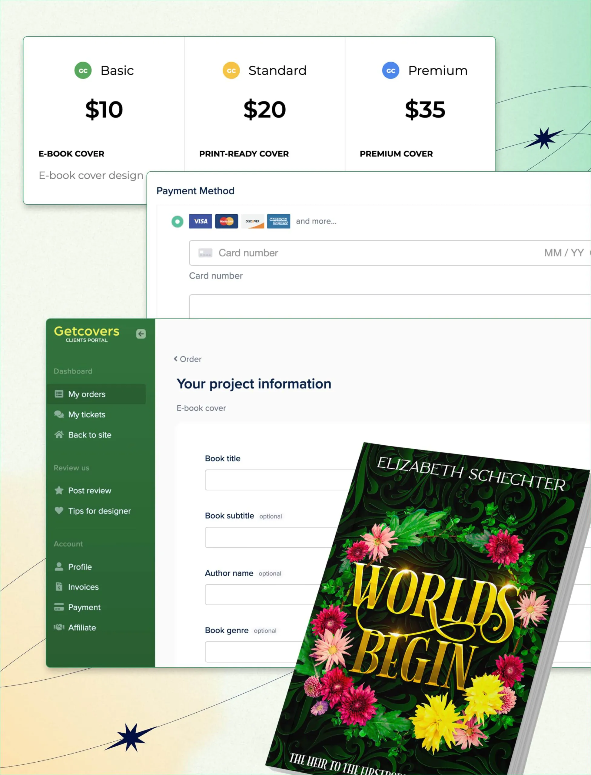 Fill in the book cover design brief and get access to a personal dashboard where you can track your order status and communicate with our managers.