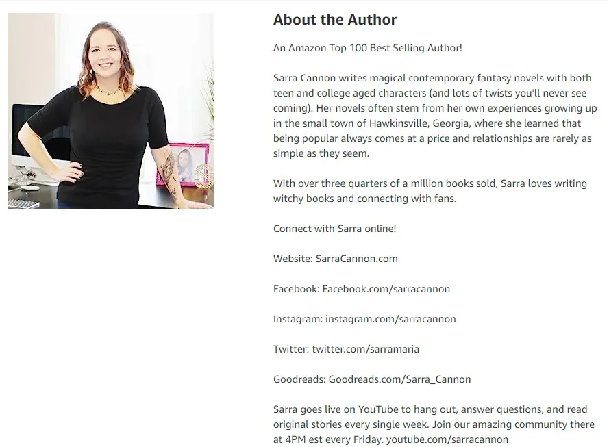 - Help readers follow you on and off of Amazon. You can add your social media links and website. Thus, readers will stay updated on your latest releases, events, and writing endeavors, strengthening your author-reader relationship.