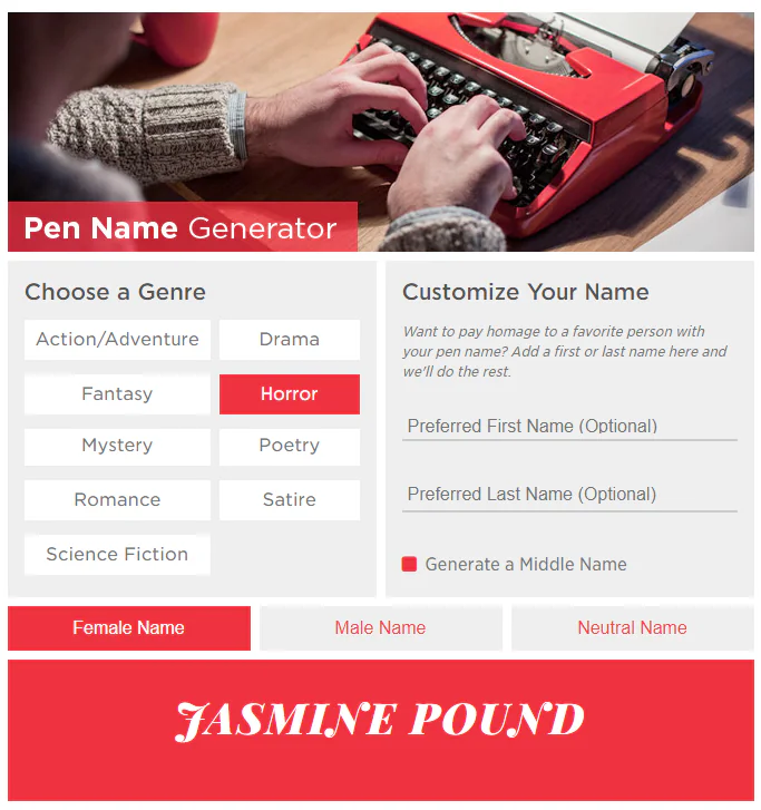 It is one of the easiest ways. You can do it here, here, and here, or google ‘pen name generator.’ Typically, such platforms ask about your preferences, interests, personal details, and book genre. You can click the generate button indefinitely until you get the most good-sounding one.
