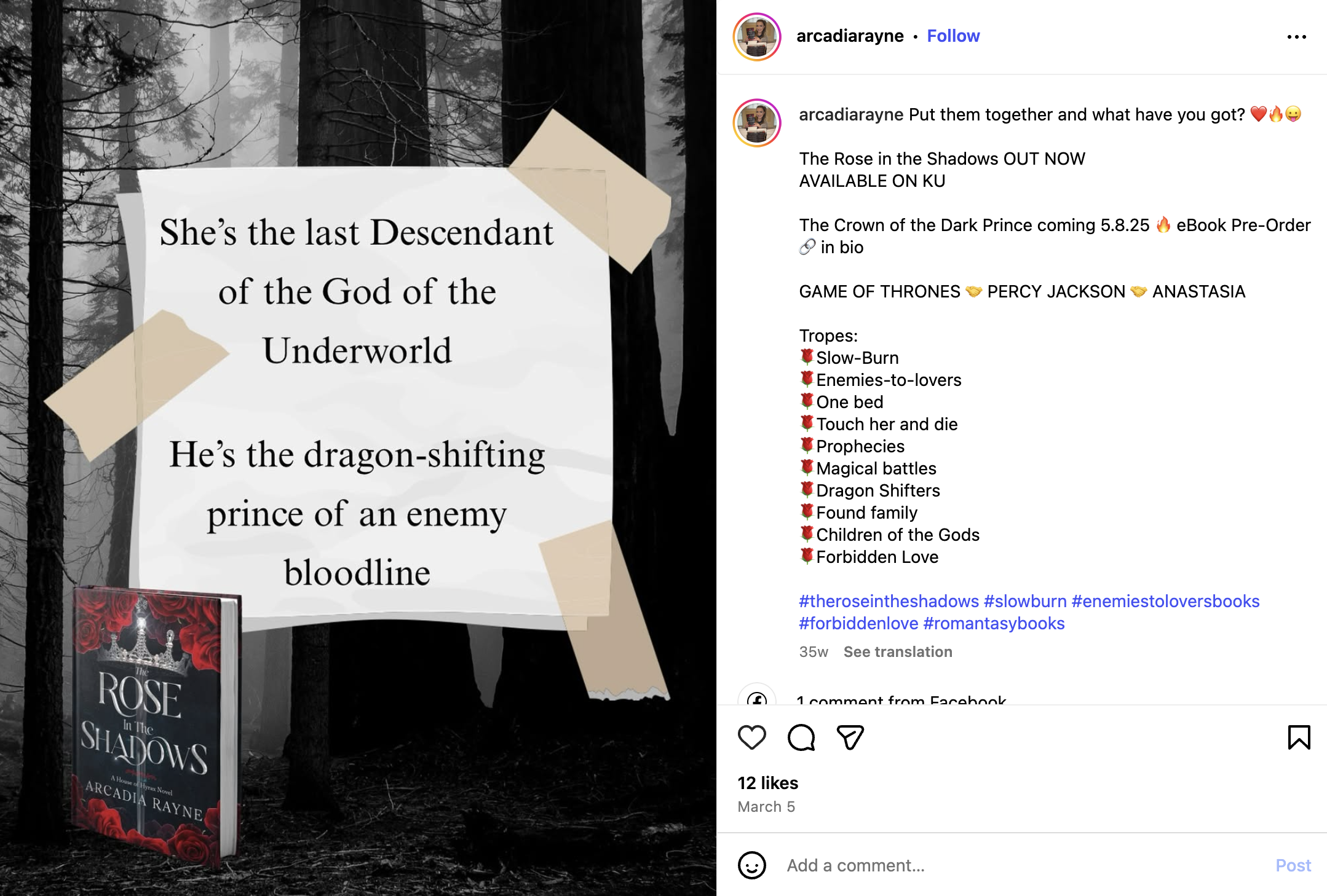 Announcing your new cover is always a big moment. Use a beautiful 3D mockup to make it stand out on social media. Pair it with your release date or tagline, and add a short caption about what the story means to you.